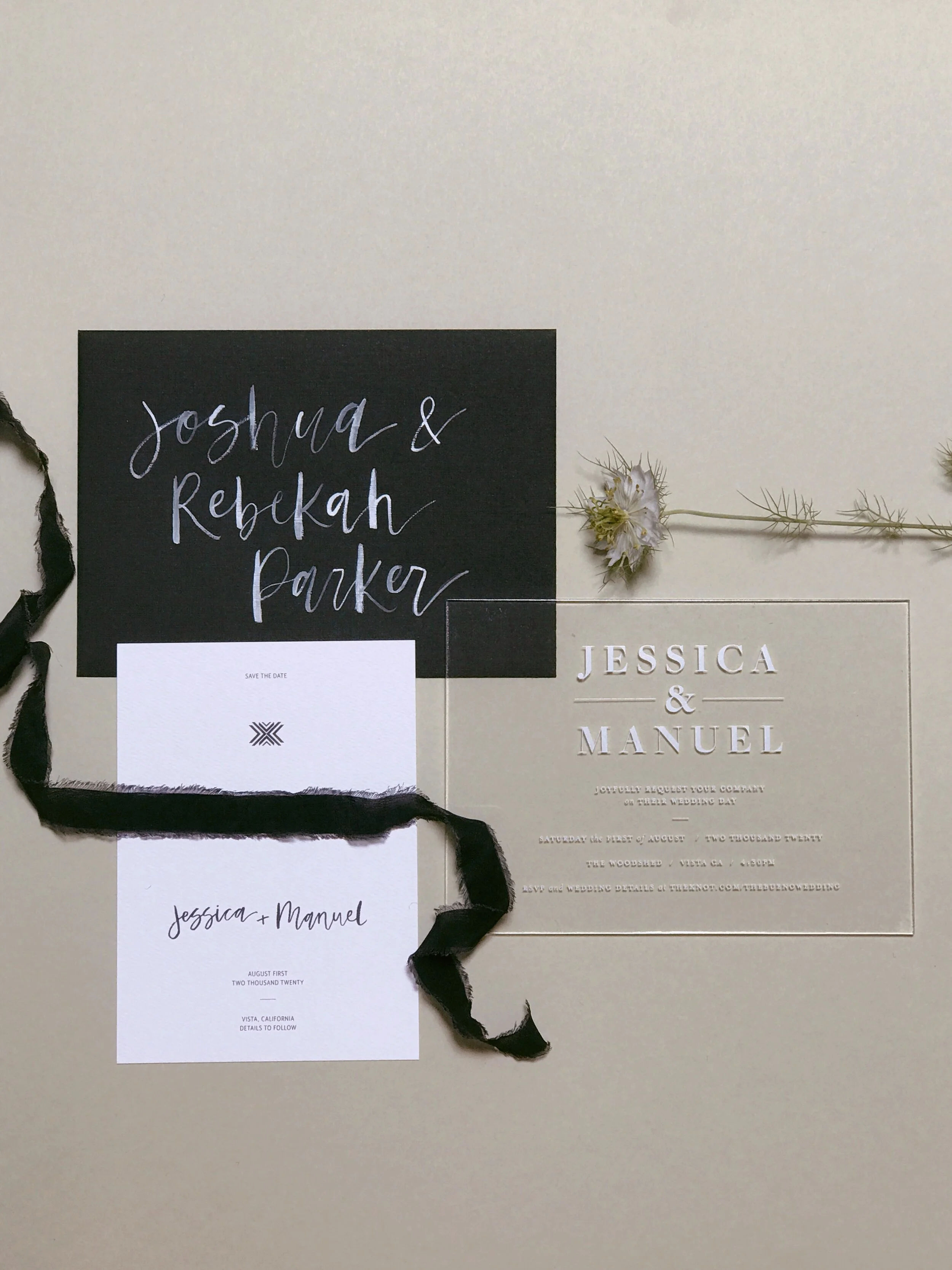 Whether you’re a couple thinking about acrylic for your suite of wedding materials or a designer who’s been commissioned to work with it, I’ll walk you through the costs, time, and investment it takes to create with acrylic! Let’s get into it.