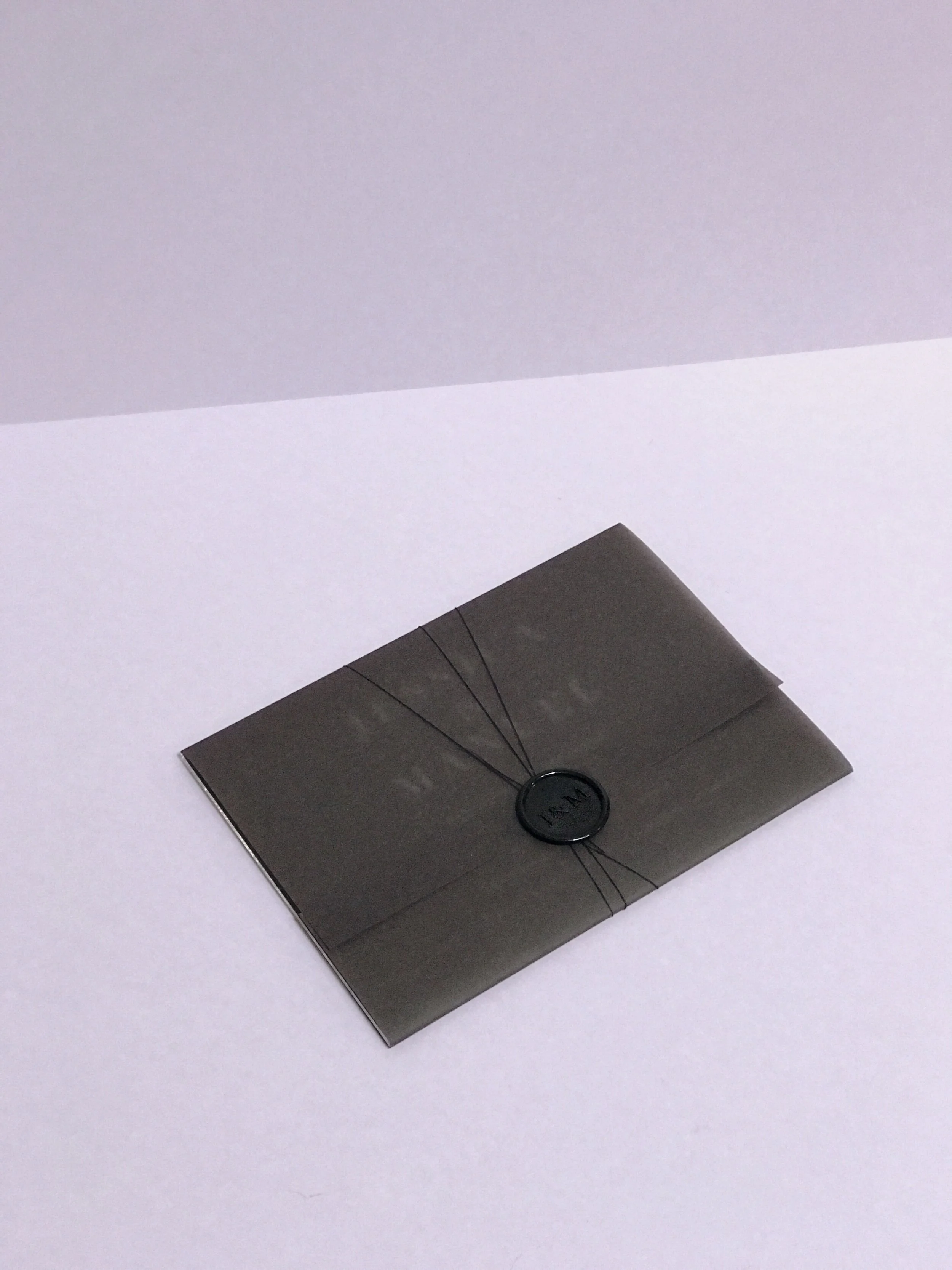 Black vellum via Onvalop (Etsy), wax seals via Artisaire.
